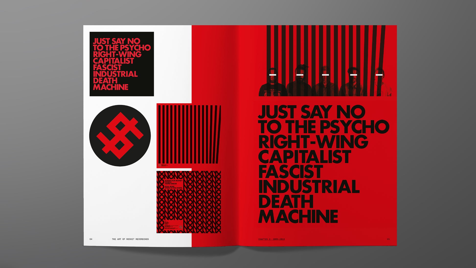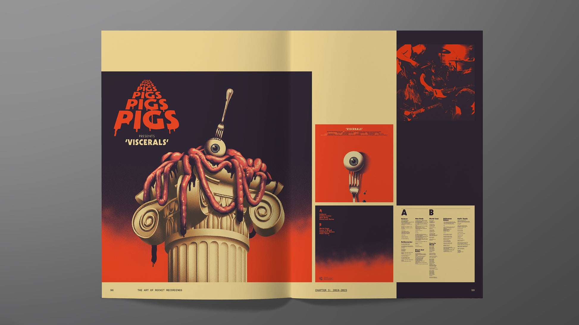 Reflecting and refracting the diverse interests and musical lives of its founder members Chris Reeder and John O’Carroll, the graphic and artistic style of Rocket has evolved from influences like Barney Bubbles and Derek Riggs and iconography from bands from Dead Kennedys to Stereolab, through decades of inspiration, illusion and experimentation into the synapse-frying visual language that offers a coded portal into the further dimensions of the Rocket universe.
